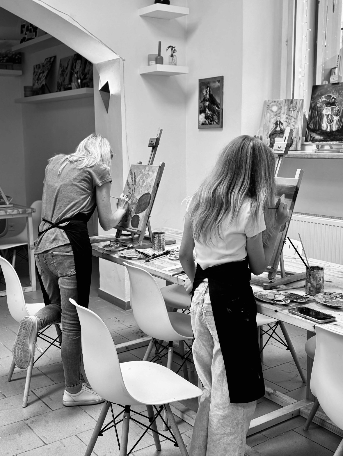 Working with children has been part of the practice since the teenage years, shaped by a natural interest in creativity and shared discovery. During formal studies, artistic work and teaching gradually began to inform one another, developing side by side. Alongside studio practice, the experience includes leading summer art camps and running regular painting courses for both children and adults, without age limits. The approach is centred on creating an open, supportive space where participants are encouraged to explore materials, imagination, and their own visual language at a comfortable pace.