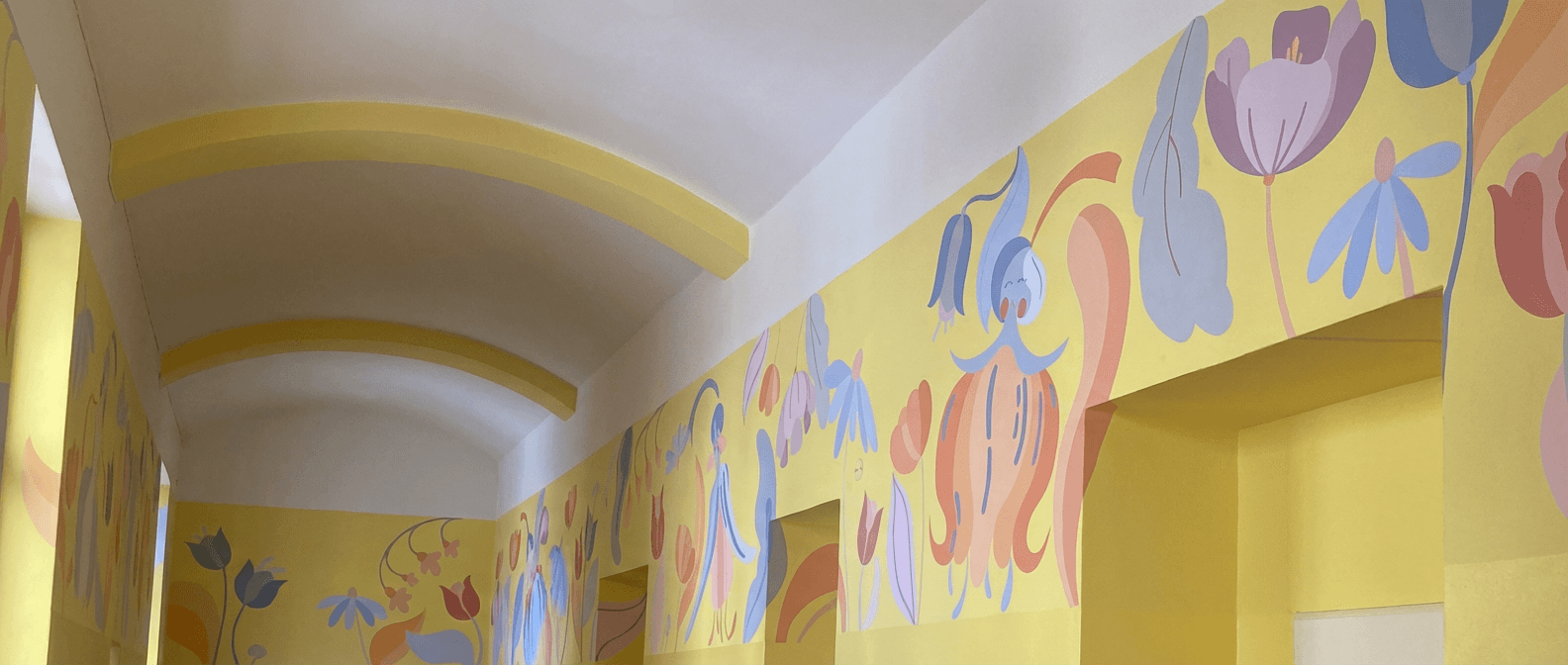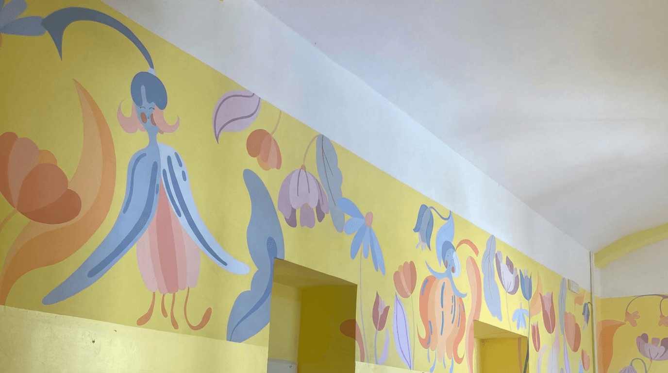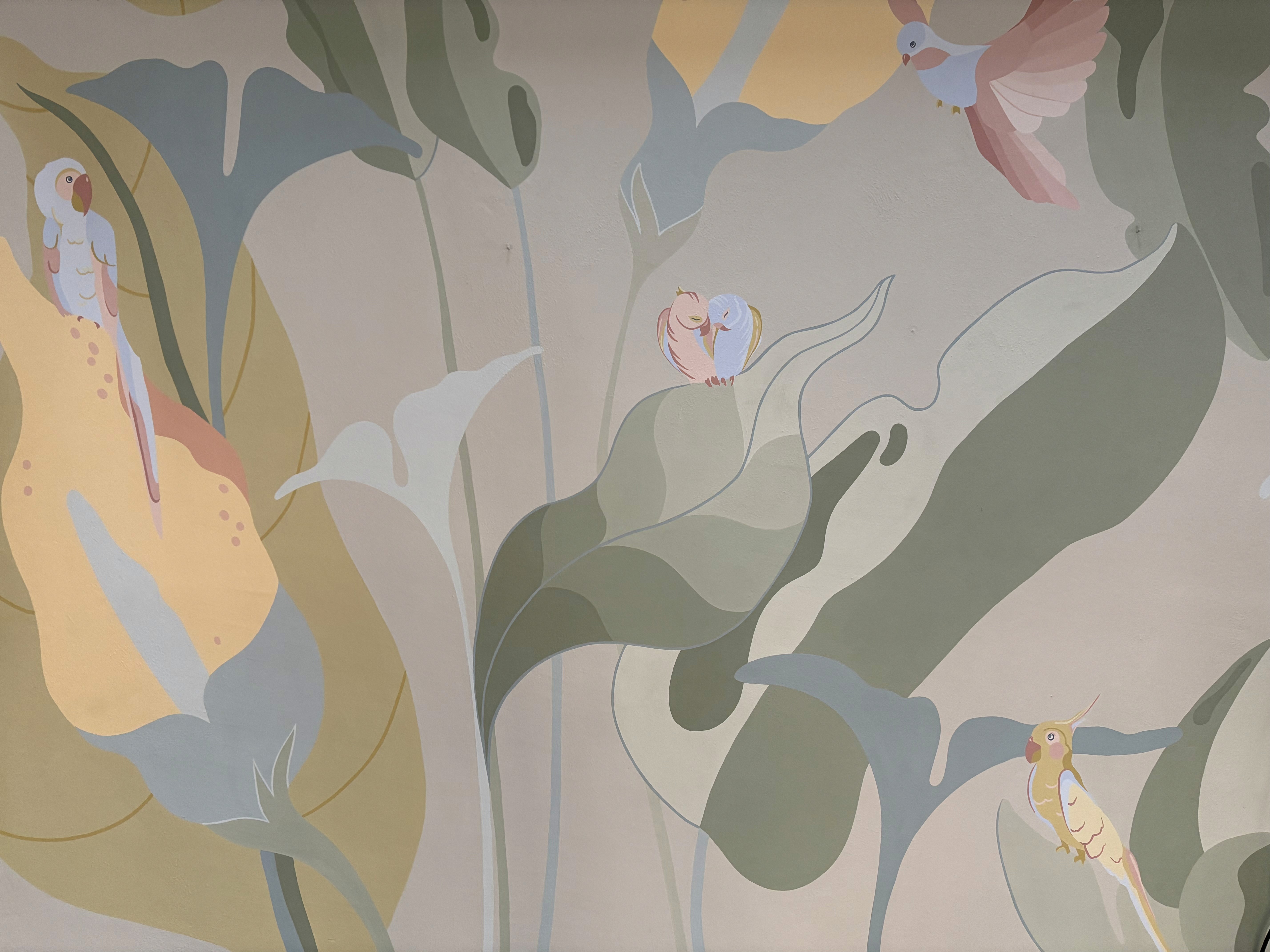 Created using traditional acrylic technique on dry wall, the murals explore joyful and uplifting themes that shape the atmosphere of a space. They are intended for shared places, supporting focus, imagination, and a calm sense of presence for both adults and children. Since 2022, the work has increasingly centred on creating meaningful spaces for younger audiences, encouraging curiosity and fantasy.
