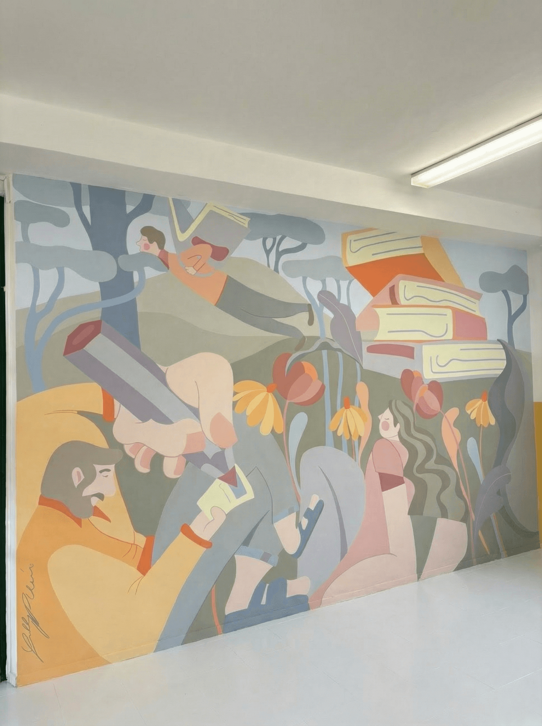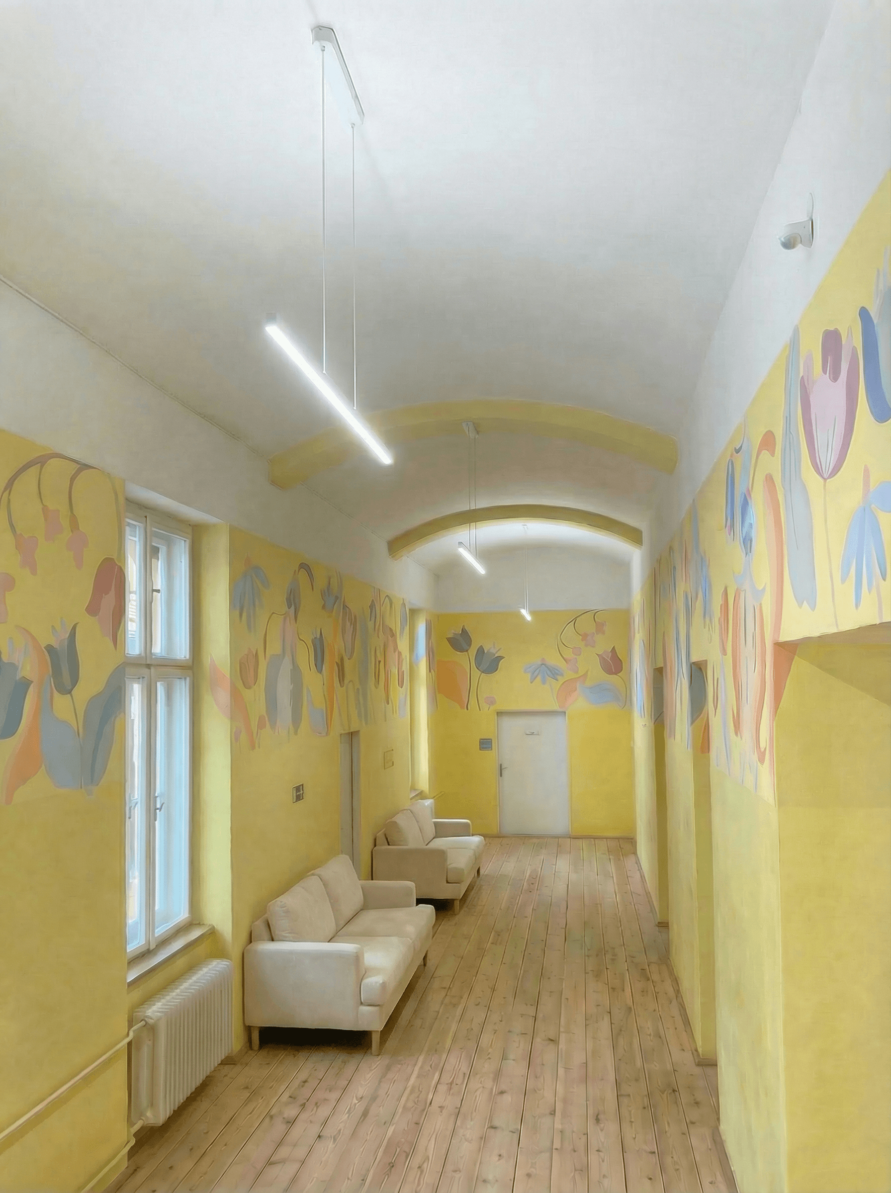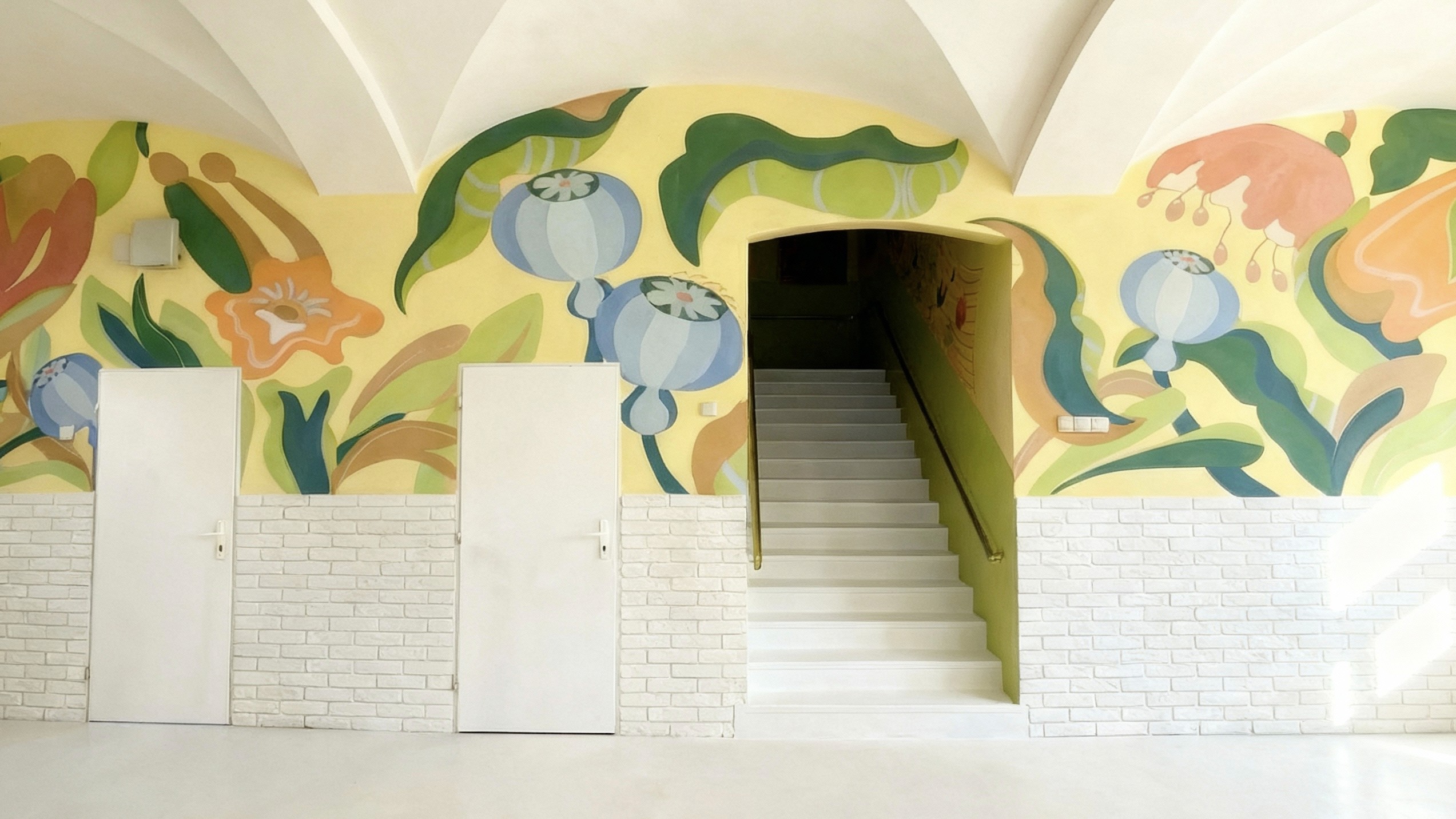 Created using traditional acrylic technique on dry wall, the murals explore joyful and uplifting themes that shape the atmosphere of a space. They are intended for shared places, supporting focus, imagination, and a calm sense of presence for both adults and children. Since 2022, the work has increasingly centred on creating meaningful spaces for younger audiences, encouraging curiosity and fantasy.